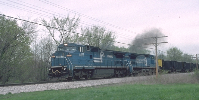 Conrail Pair led by unit 6077 pulling coal emptys southbound through Middle River.