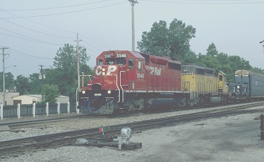 Typical SD-40 leads a not to common trailing unit as X514 heads East through Plymouth at 7:10a 6/19/97.