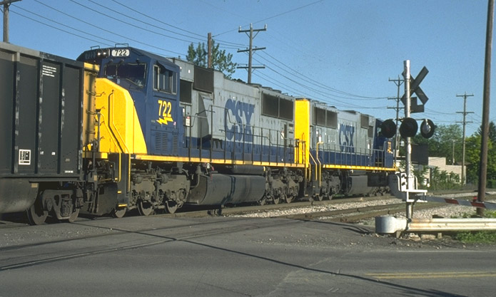 The SD70 MACs have arrived in Plymouth. The first in-service SD70 MACS I have seen in Plymouth showed up at the head end of the N924. Shown here coming out at Lilley Road on 5-25-00 8:00a.