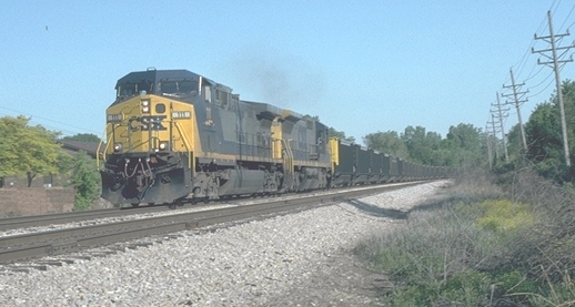Pair of General Electric AC4400CWs lead N902 Northbound through "the pass" clearing Palmer at 6:11p 5/13/96.