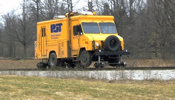 Pandrol Jackson track evaluation truck at Middle River north of Plymouth.