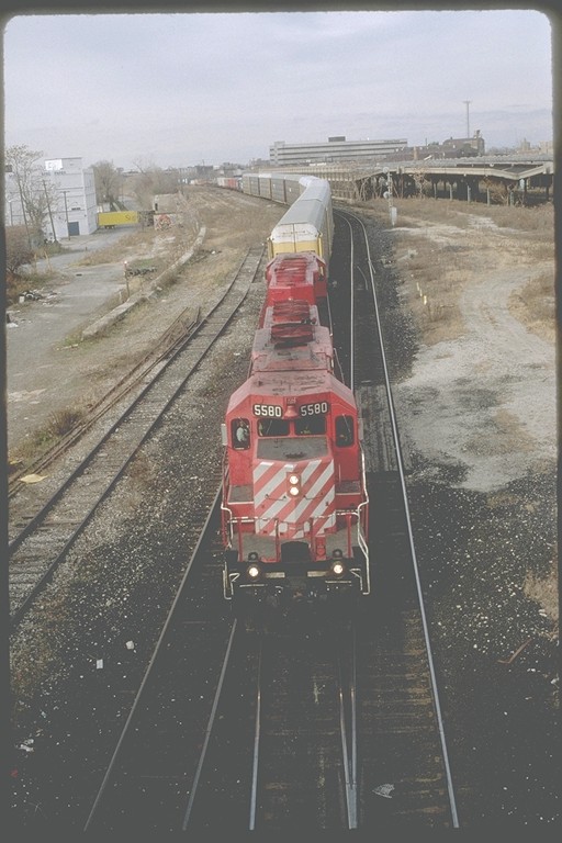CP5580 crosses over on the approach to the Detroit - Windsor Tunnel.