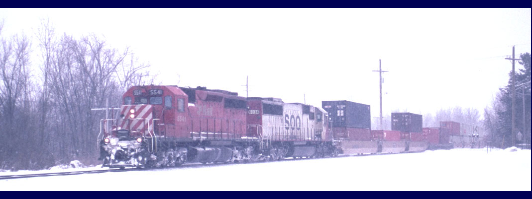 X505/X504 now traverse the CN Chicago Division entering the states via the Sarnia-Pt Huron Tunnel. Shown here on the Flint sub west of Tappan Yard it has just come under the river on Feb 4, 2001 at 11:45a.