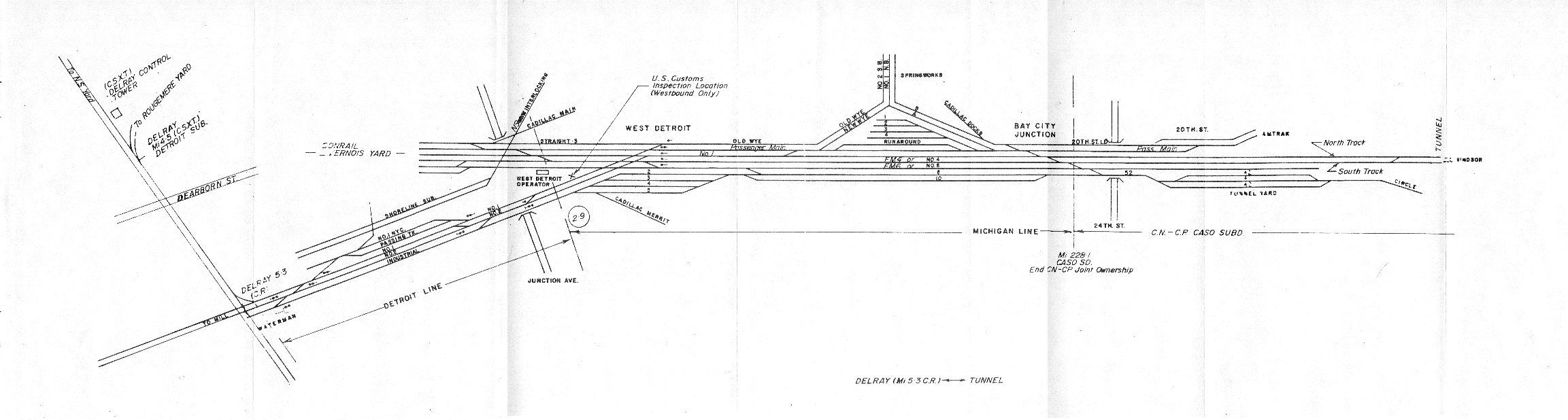 Switches and derails between Erie and East Portal are power operated and between West Portal and 24th St. Detroit are dual control.
