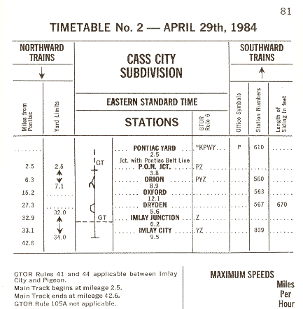 Cass City Subdivision Trains originating at Pontiac Yard must obtain clearance at Pontiac Yard.