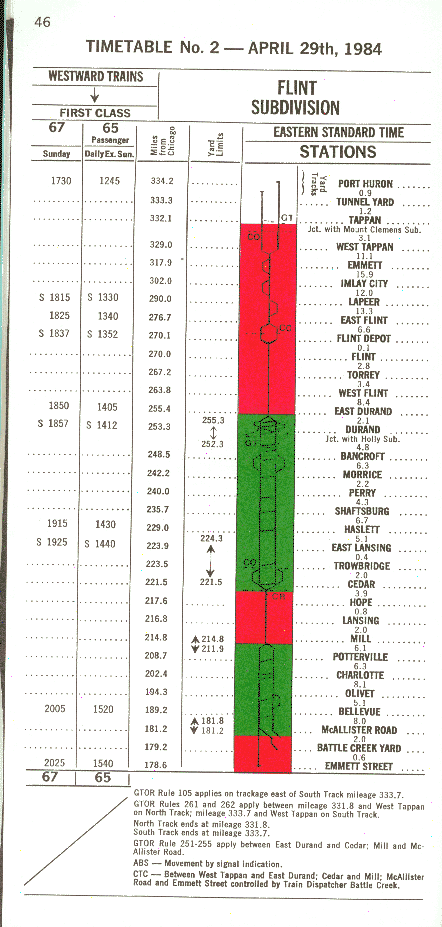 PORT HURON - Westward first class passenger trains originating Port Huron must contact Train Dispatcher Battle Creek before departure and must obtain clearance at Tappan.