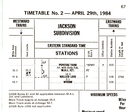 PONTIAC YARD - Register station for Jackson Subdivision trains originating and terminating.