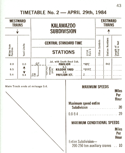 Between mileage 9.4 and Kilgore Yard, joint with CR. GTW timetable and rules govern.