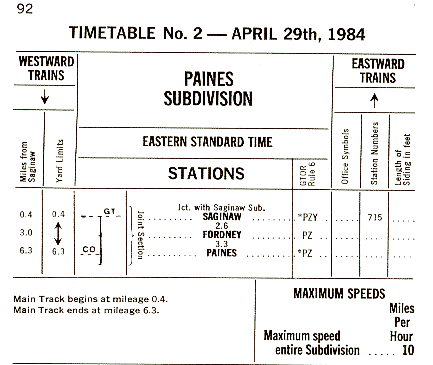 2.1 JOINT MAIN TRACK - Saginaw to Paines joint with C&O. GTW timetable and rules govern.