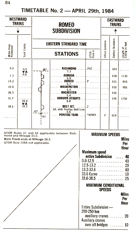 2.5 ROMEO SUBDIVISION - Westward Trains arriving at Belt Jct. will call West Train Dispatcher at Pontiac Yard for instructions before moving onto Pontiac Belt Line.