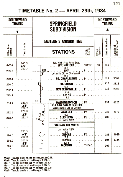 3.2 Mileage 231.7 to Mileage 233.5 joint with B&O. B&O Timetable and rules govern.