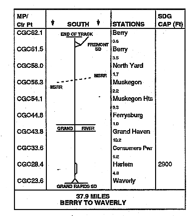 Notes: Muskegon - Operating rights are granted to the Michigan Shore Railroad in Rule 93 territory between CGC54.0 and CGC58.6.